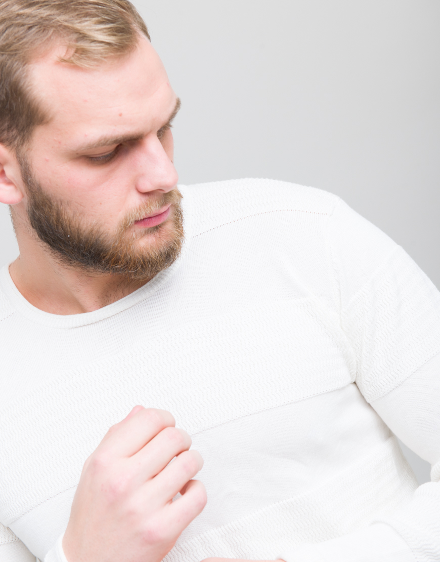 Bluza cu guler rotund. Maneci lungi. Dunga decorativa si bordura la gat. Mansete si la baza.