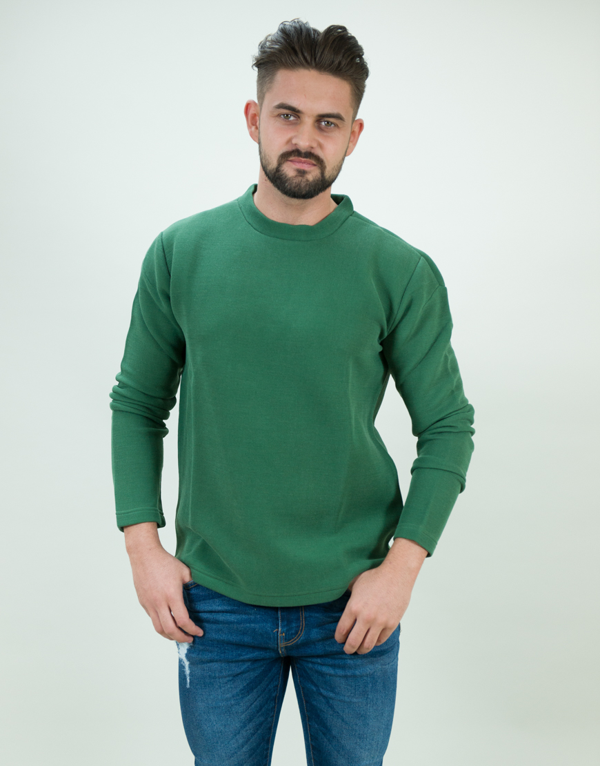 Bluza cu guler rotund, din amestec de bumbac, cu bordura la gat, mansete si la baza. Maneca lunga.