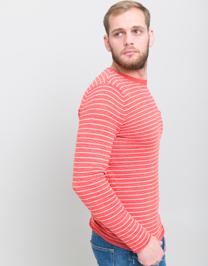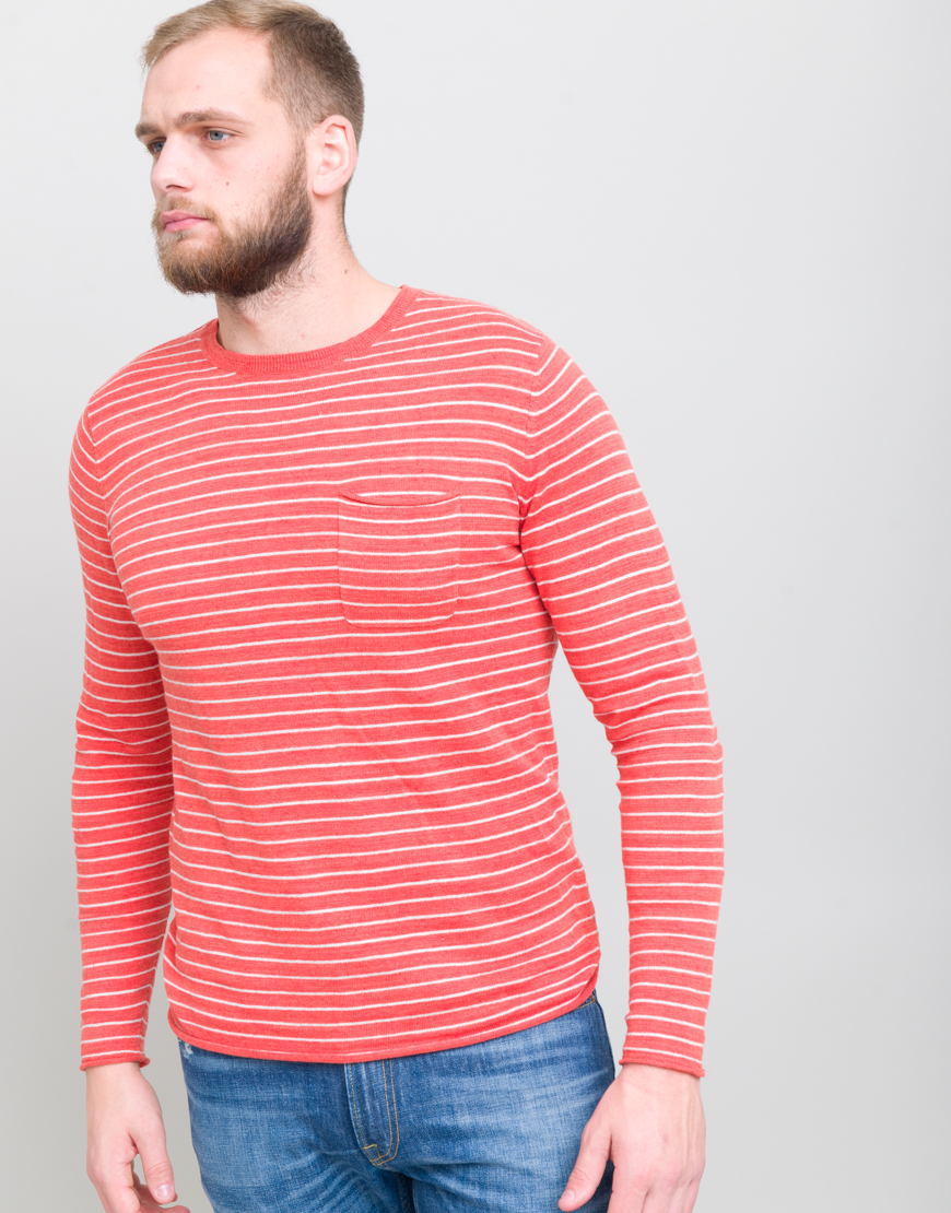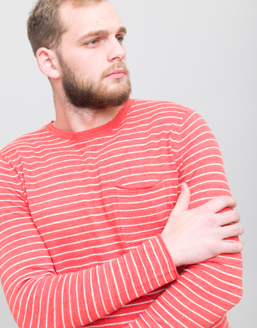 Bluza cu dungi si buzunar. Guler rotund. Maneca lunga.