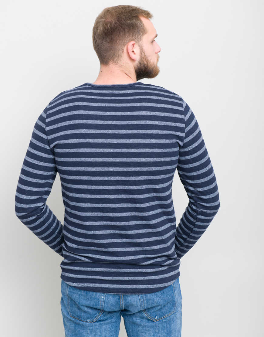 Bluza cu dungi orizontale. Guler rotund. Maneca lunga.