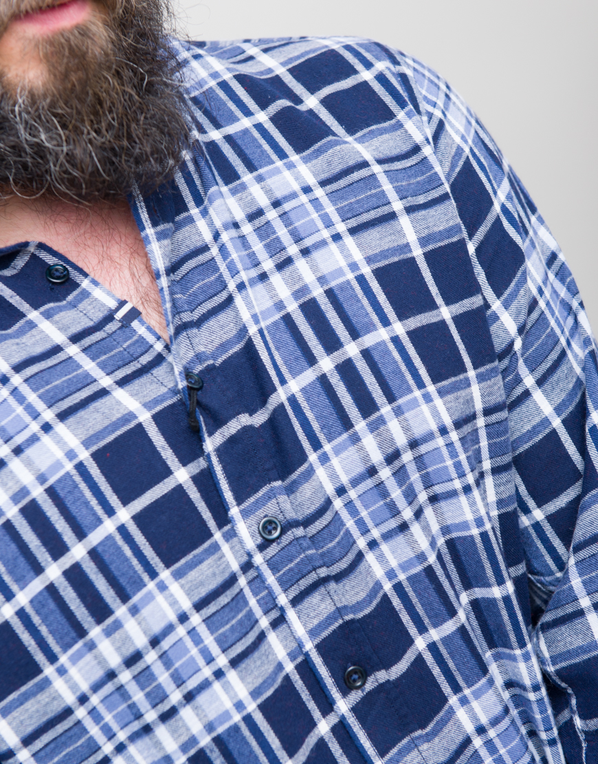 Camasa in carouri. Maneca lunga. Guler clasic. Croiala rotunjita la baza, putin mai lunga la spate si mansete reglabile cu nasturi. Inchidere frontala cu nasturi.