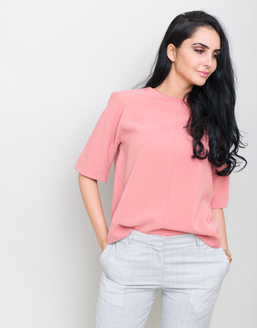 Camasa din saten de culoare roz Henin