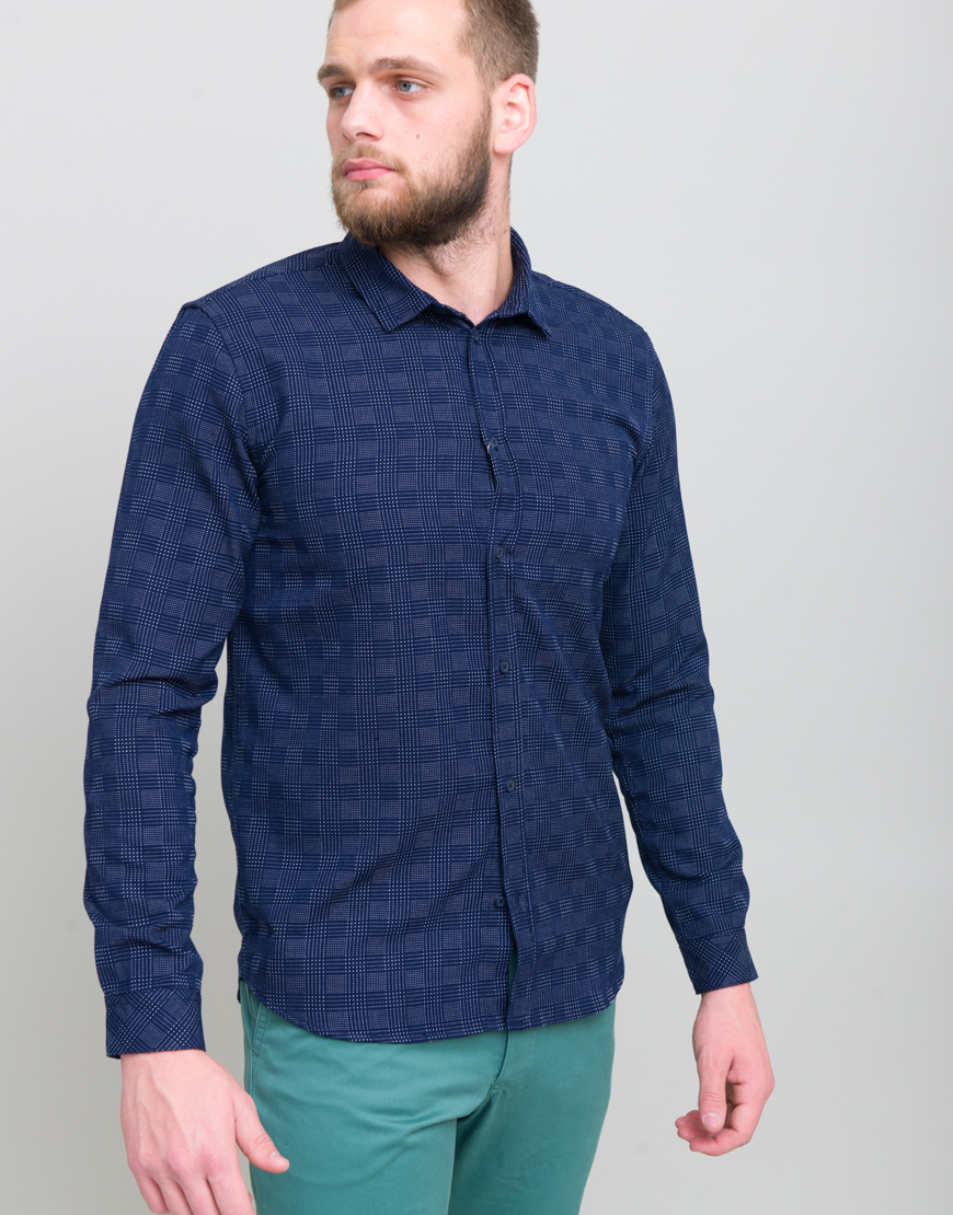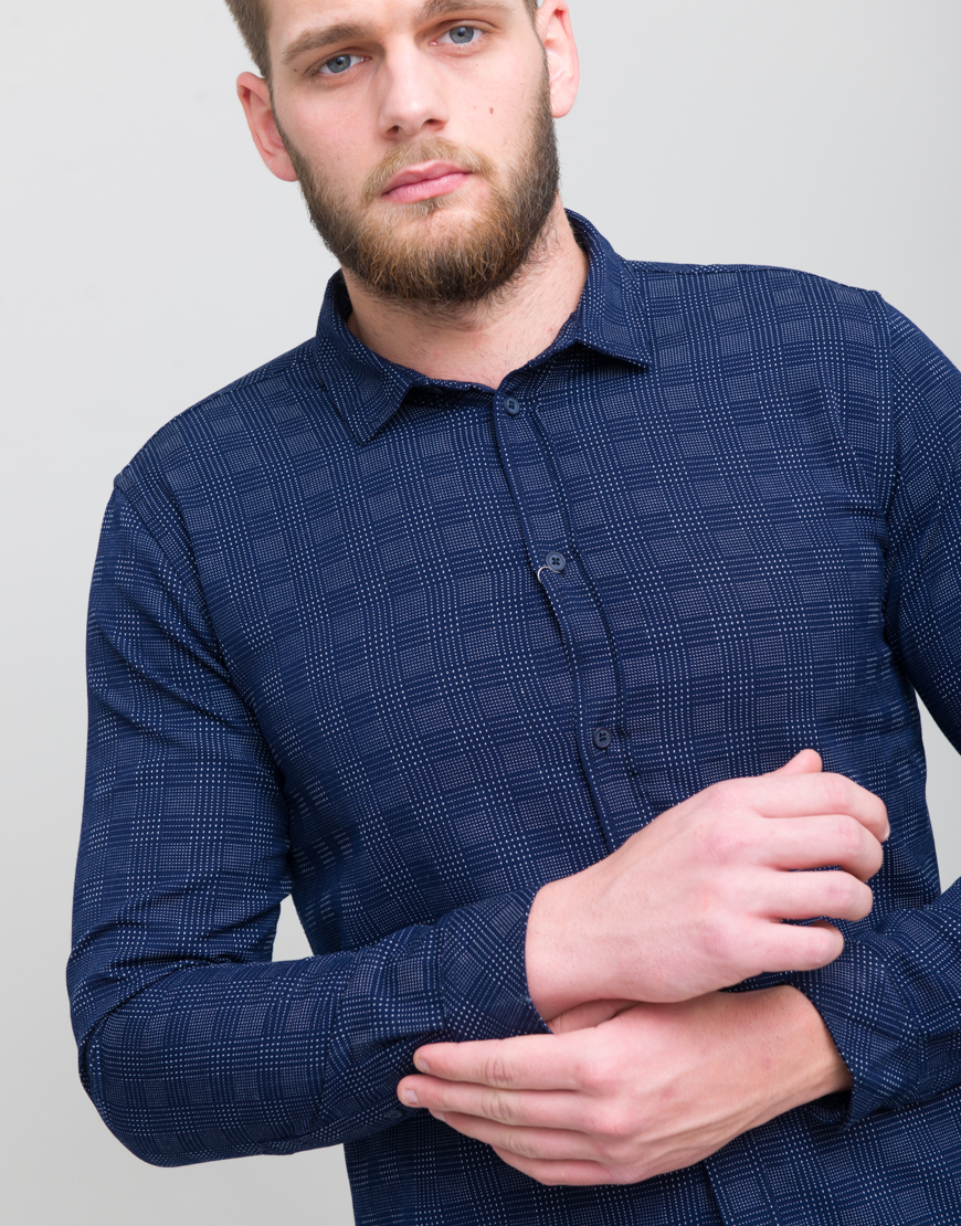 Camasa de bumbac, cu motive. Croiala dreapta. Maneca lunga. Guler clasic. Mansete incheiate cu nasturi. Inchidere frontala cu nasturi.