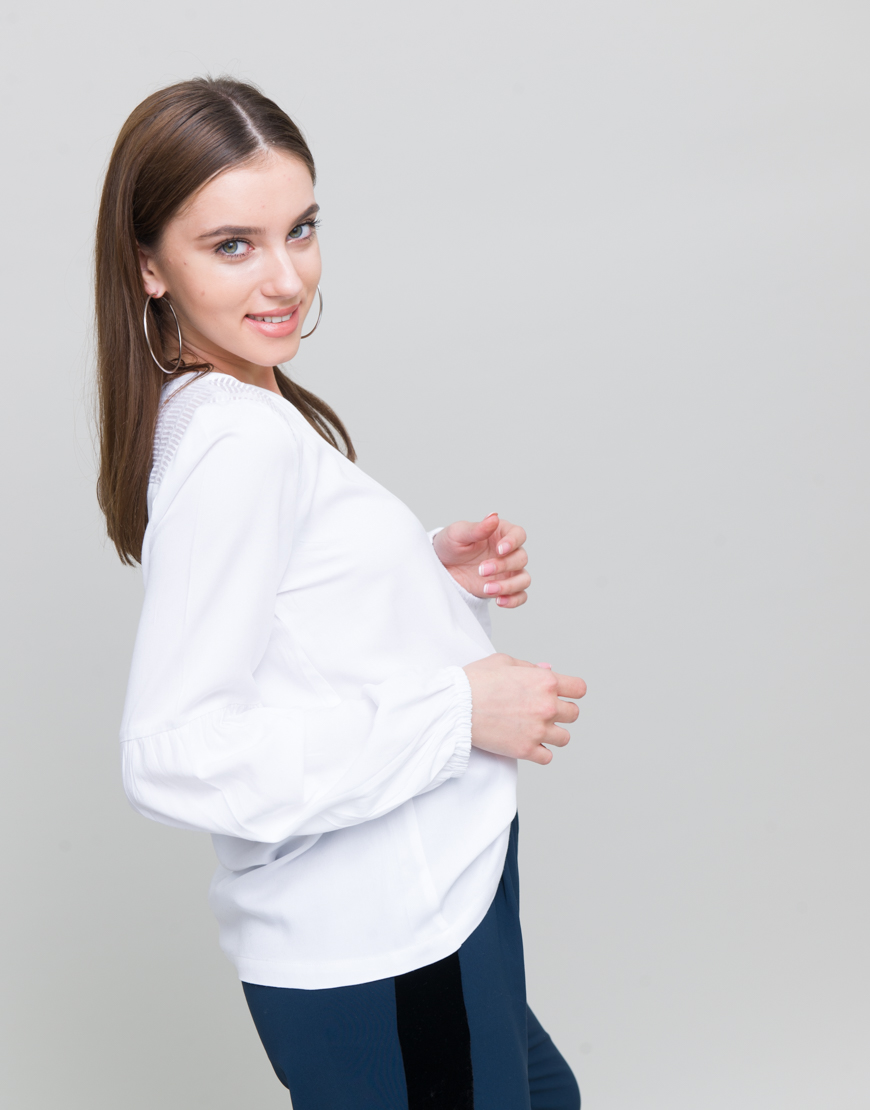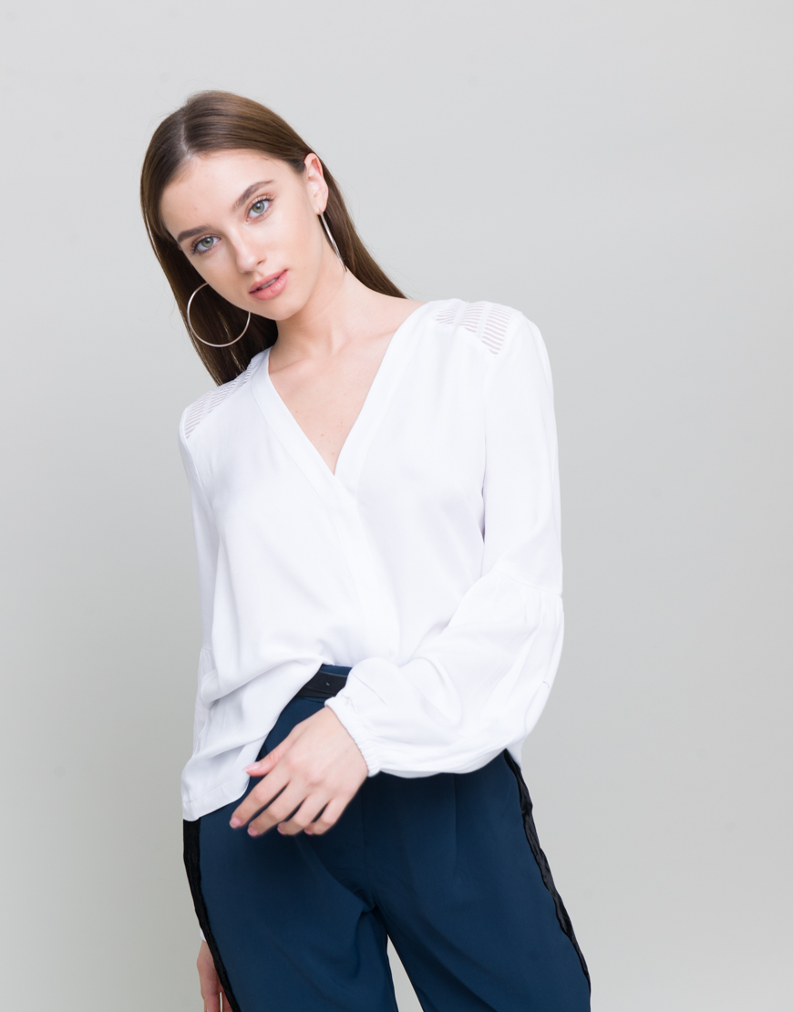 Camasa cu decolteu in V. Inchidere cu nasturi. Maneca lunga.