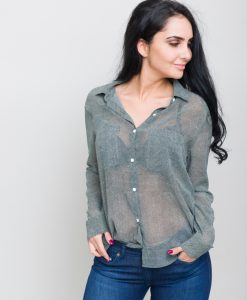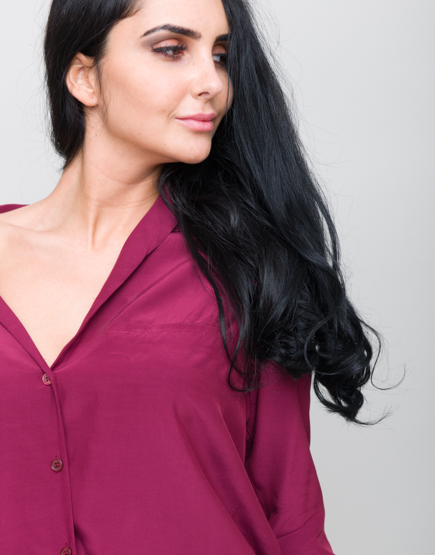Camasa cu decolteu in V, cu nasturi.