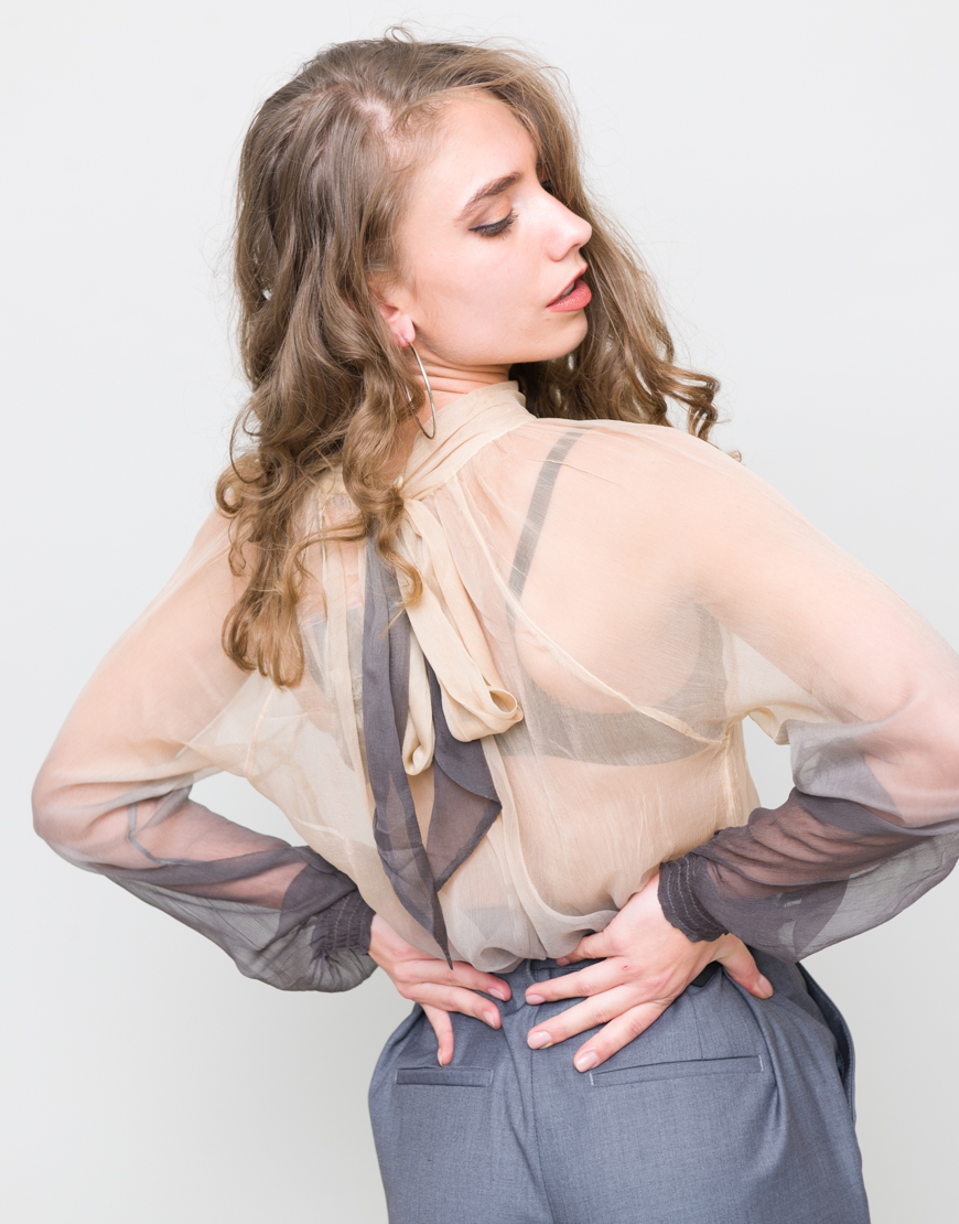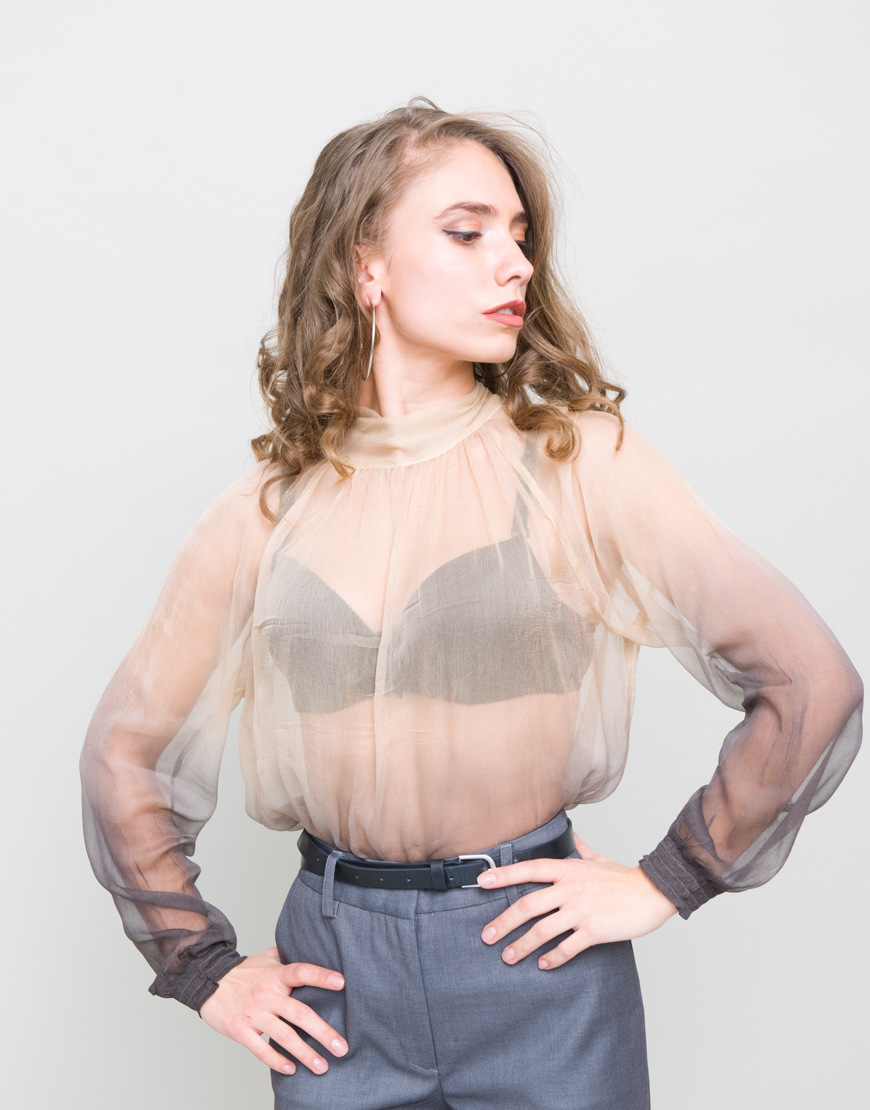 Camasa transparenta cu nuante de maro.