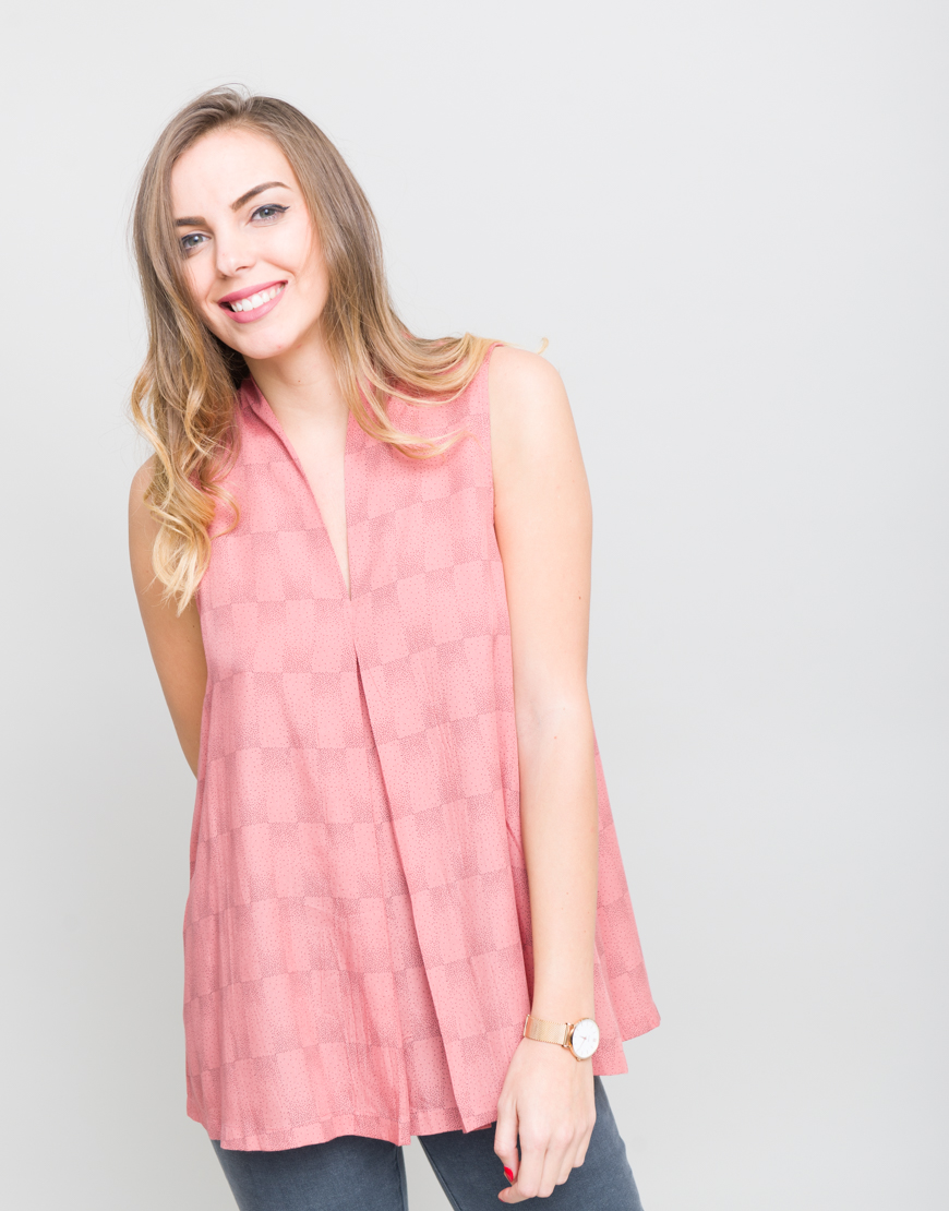 Camsa larga, cu maneca scurta. Decolteu in V.
