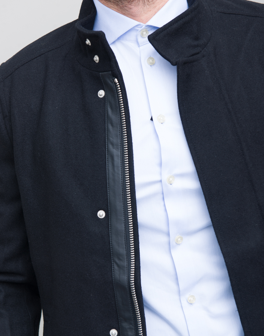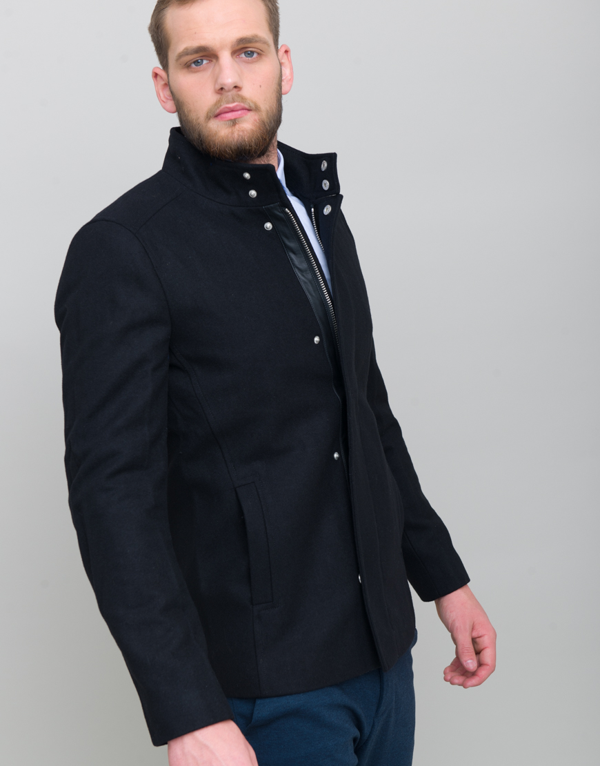 Geaca simpla cu detaliu. Inchidere cu capse si fermuar ascuns. Buzunare laterale.