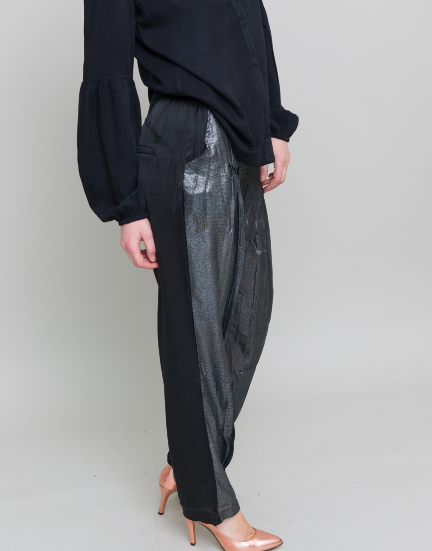 Pantaloni deosebiti in doua culori. Inchidere cu fermoar .