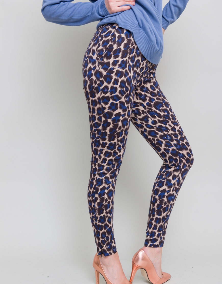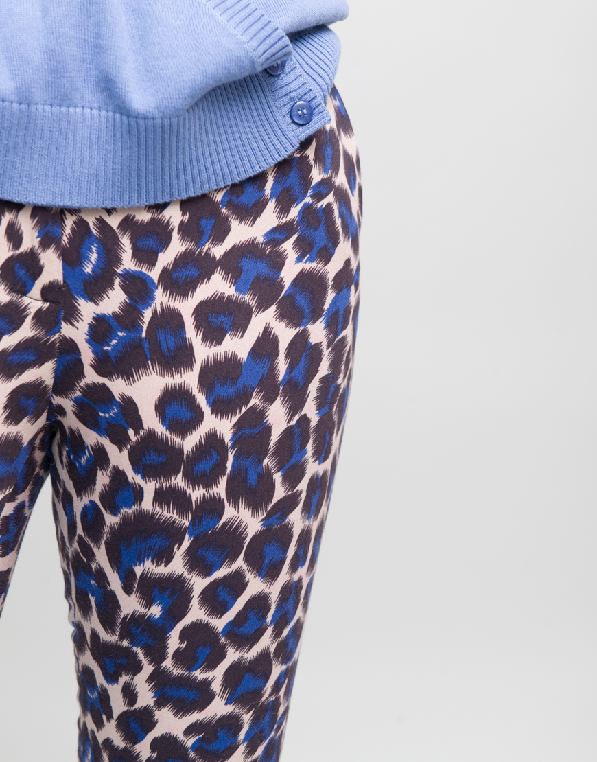 Pantaloni cu imprimeu animal print. Cinci buzunare. Inchidere frontala cu fermoar.