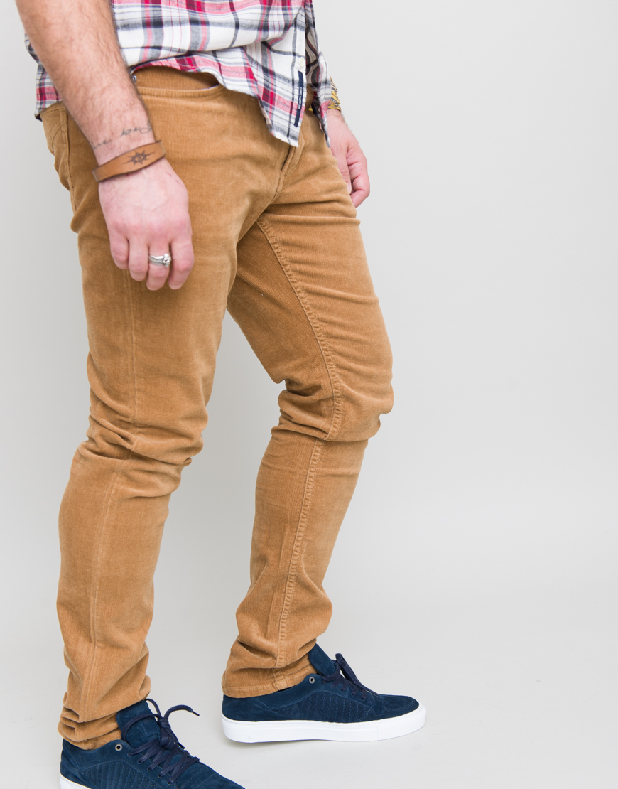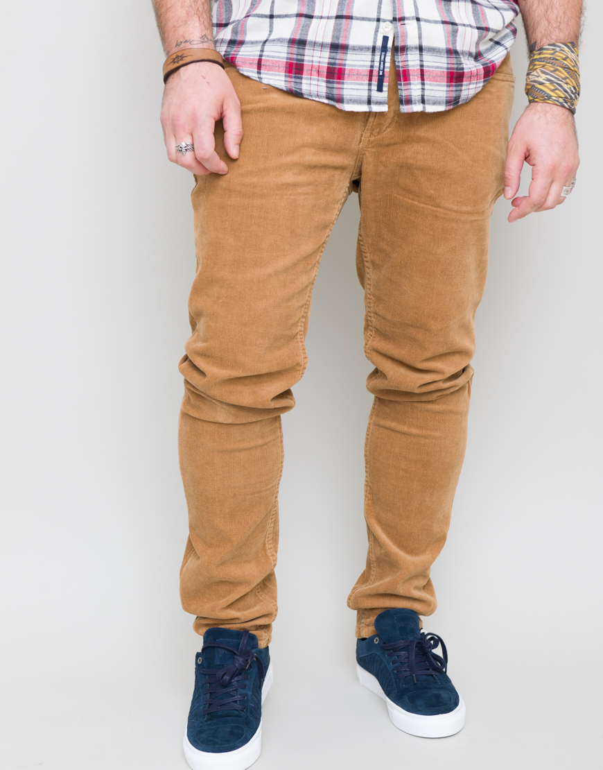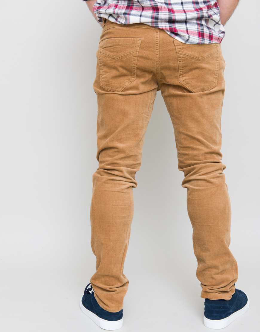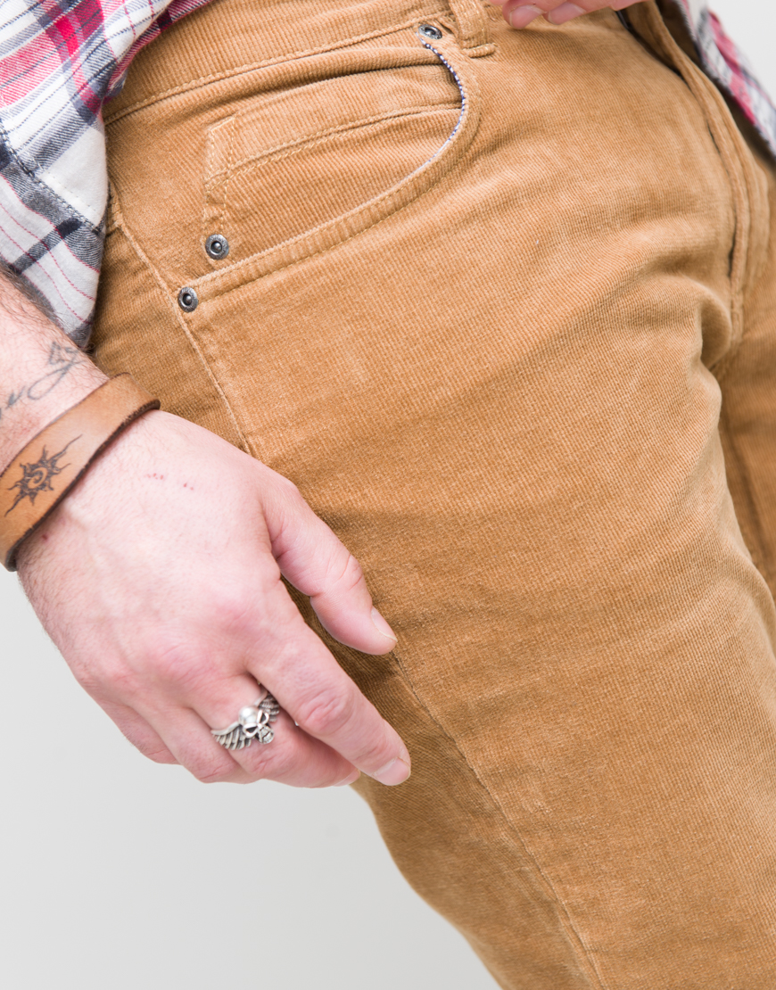 Pantaloni din catifea reiata carrot fit. Cinci buzunare. Inchidere frontala cu fermoar.