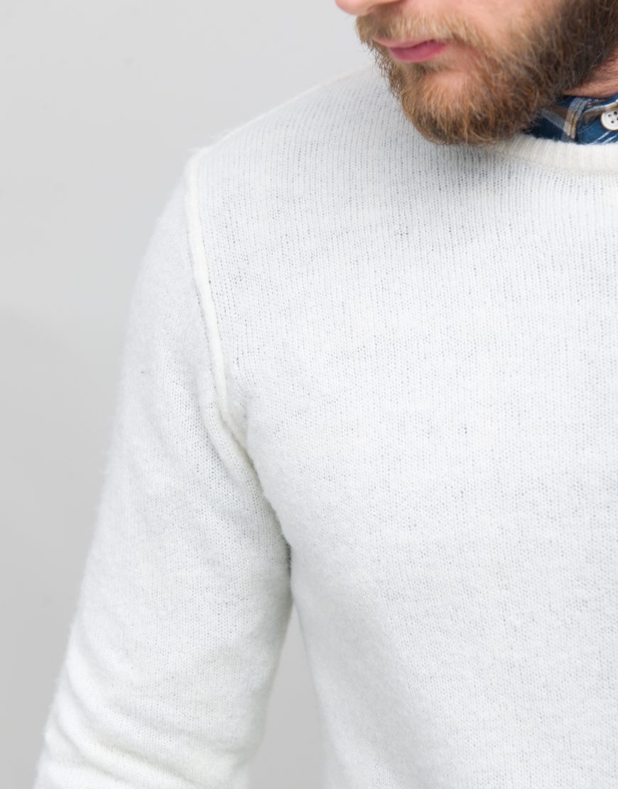 Pulover din tricot melanj de lana. Guler rotund. Maneca lunga.