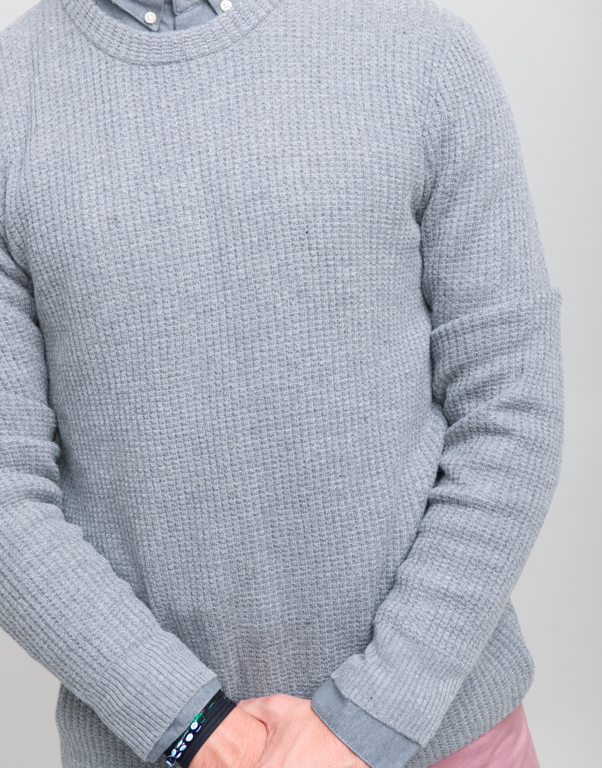 Pulover din tricot. Guler rotund. Maneca lunga. Margini reiate.
