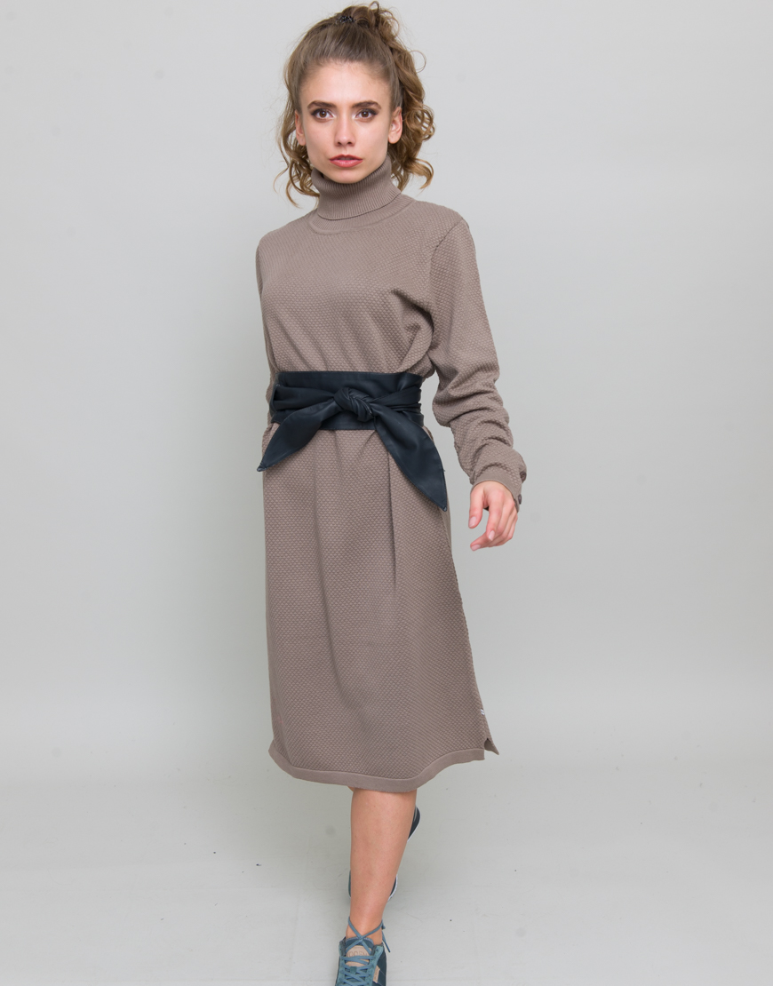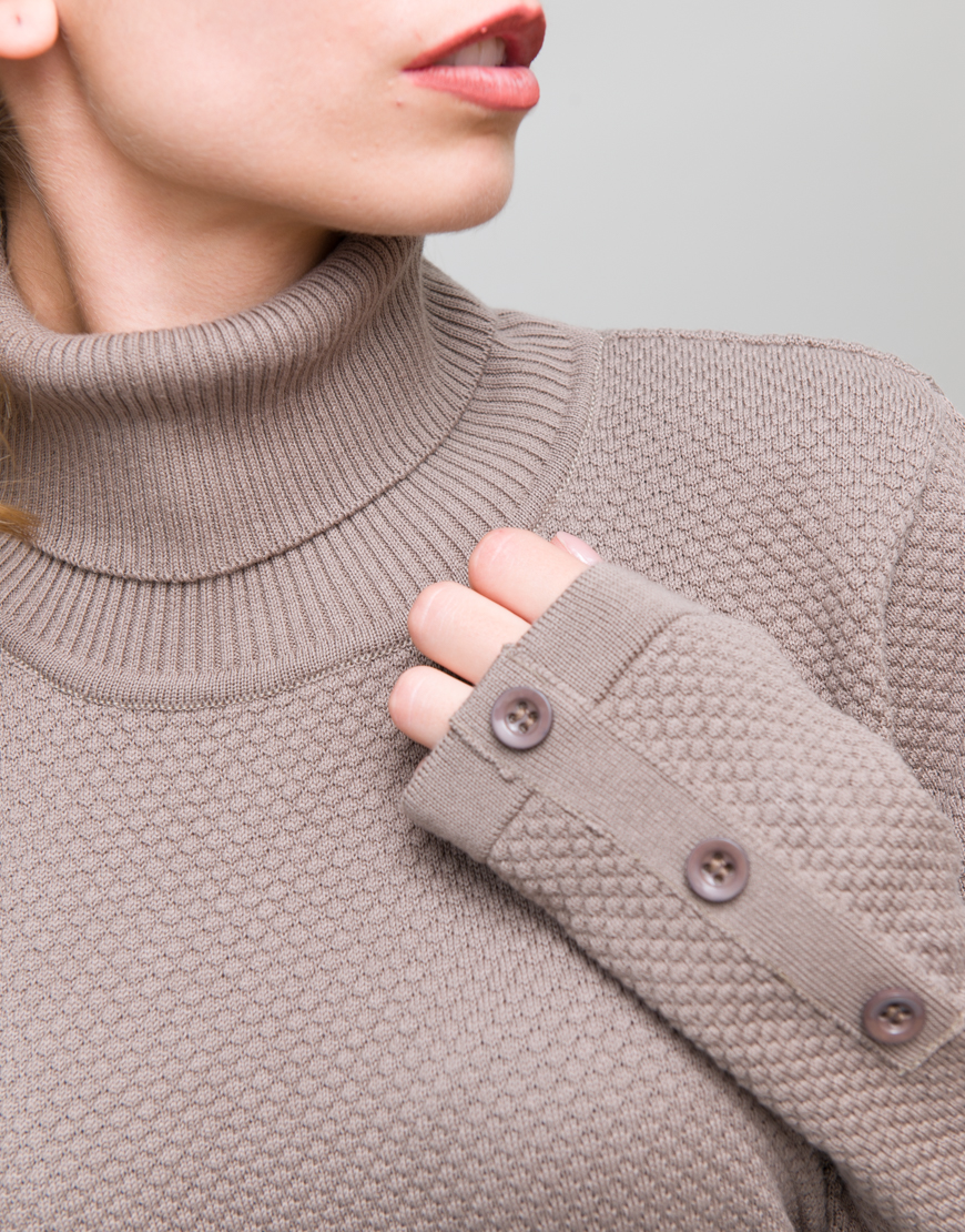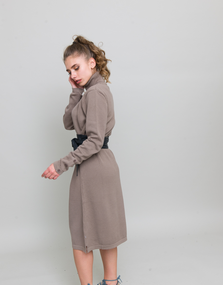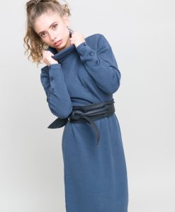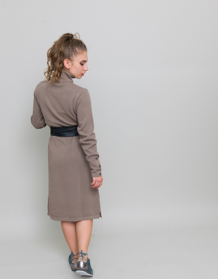 Rochie cu structura. Guler rulat. Maneca lunga. Detaliu nasturi.