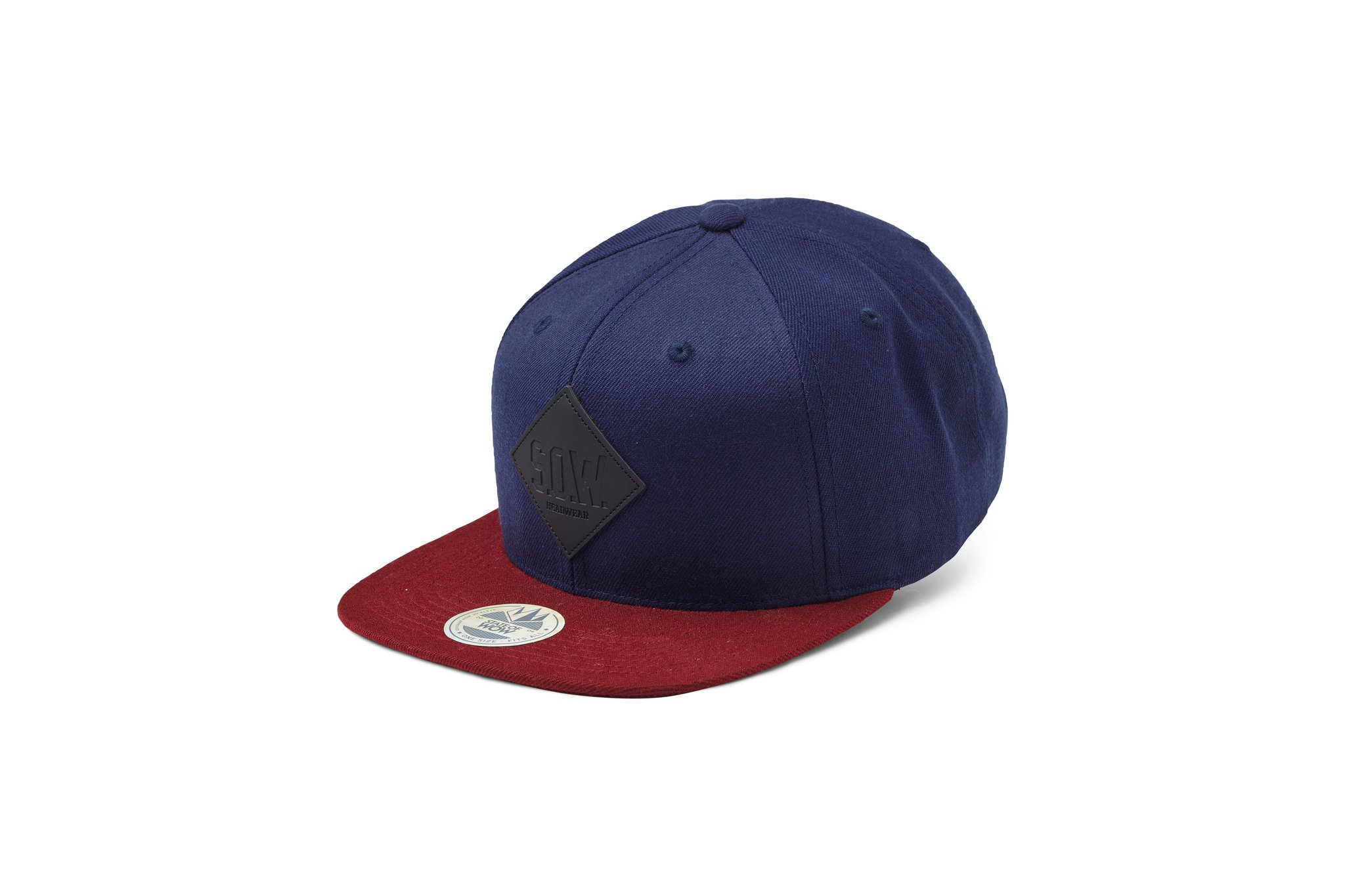 Sapca cu cozoroc drept rosu, cu emblema din piele.