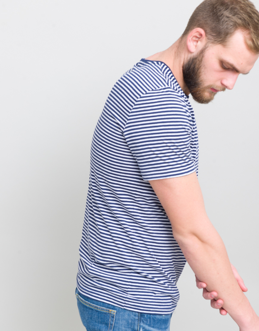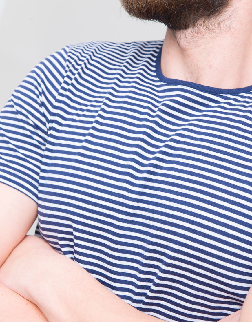 Tricou cu dungi. Guler rotund. Maneca scurta.